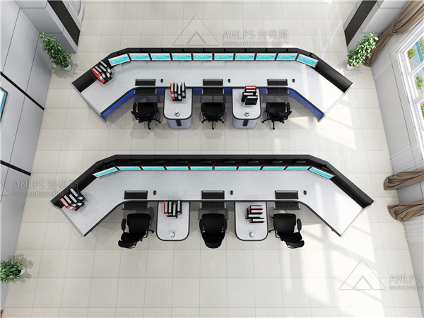 考虑监控室控制台的结构布局因素也是一个很重要的因子。要求考虑监控人员的观看大屏幕的视线良好,同时,确保监控人员人与人之间有合理的间距并能很好的交流。